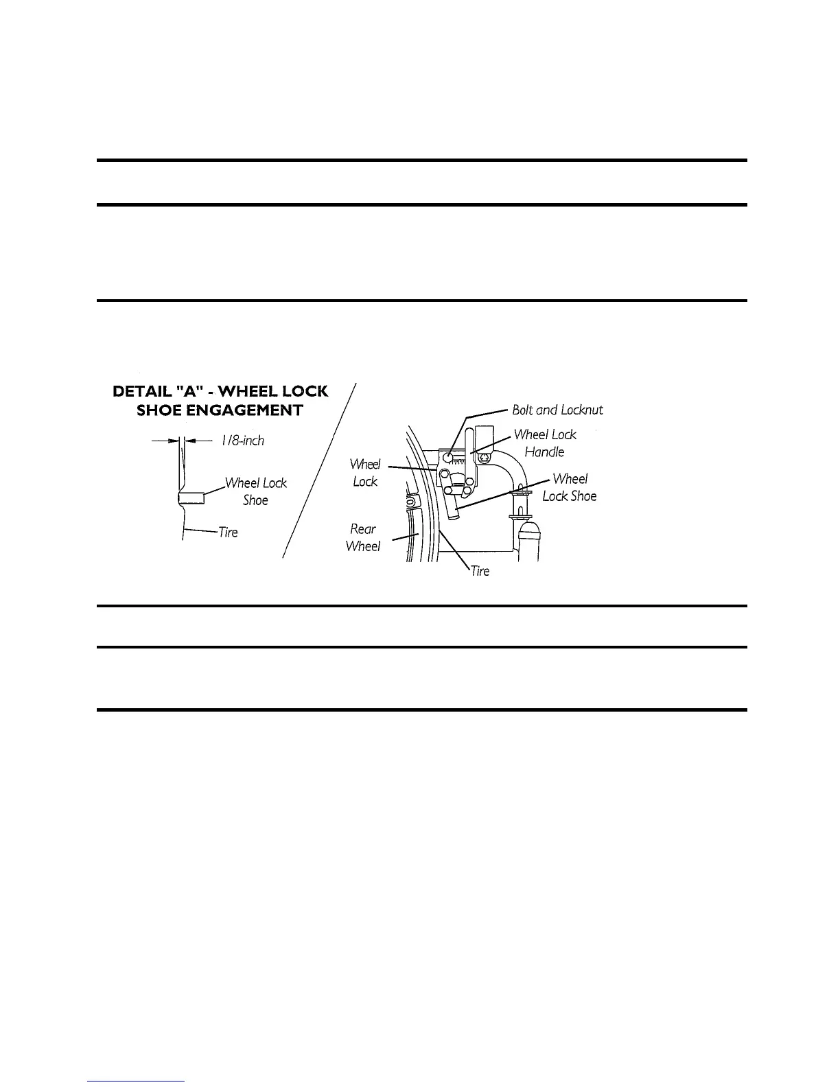 NOTE: Any wheel lock adjustment should embed the wheel lock shoe at least 1/8-inch into