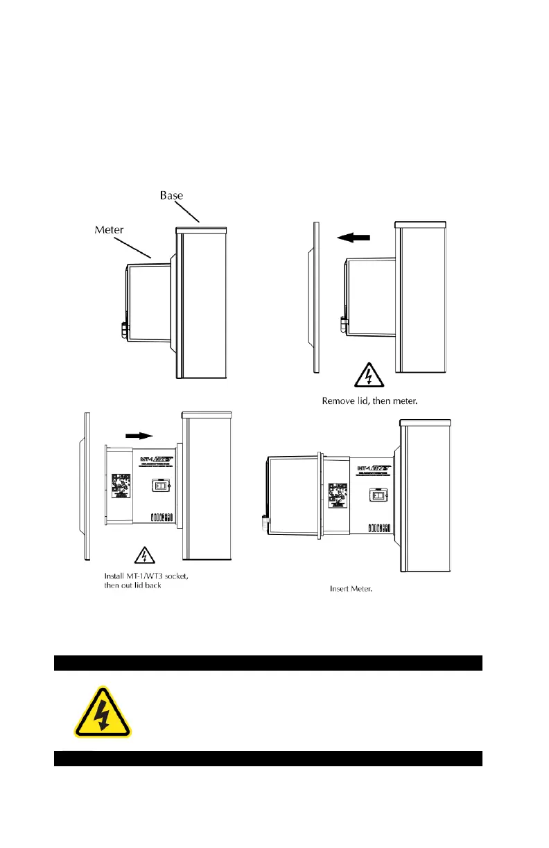 Plug the meter into the front of the MT-1/WT3 socket. If I/O cables are present, place