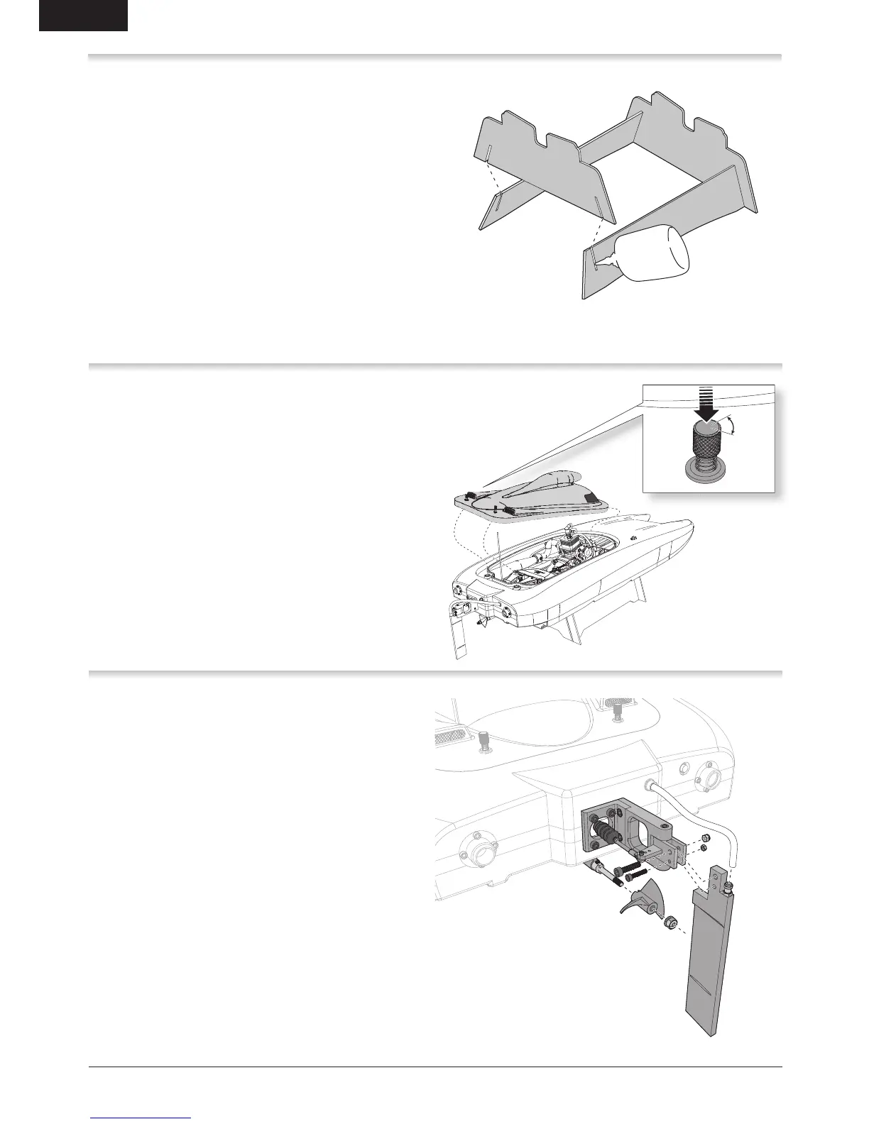 1. Install the rudder in the mount using 2 screws and 2