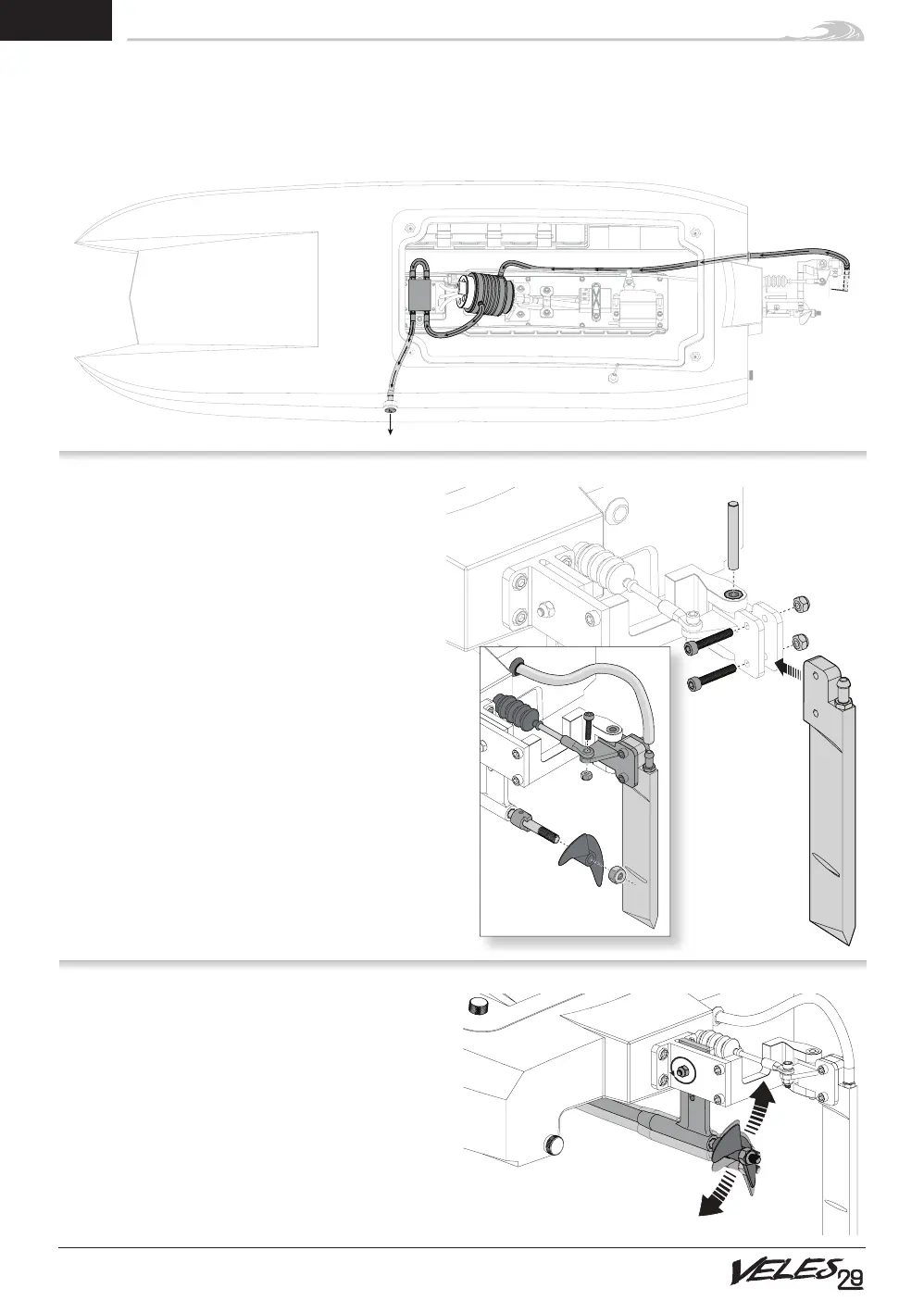 2. Remove the nut, screw and linkage from the rudder