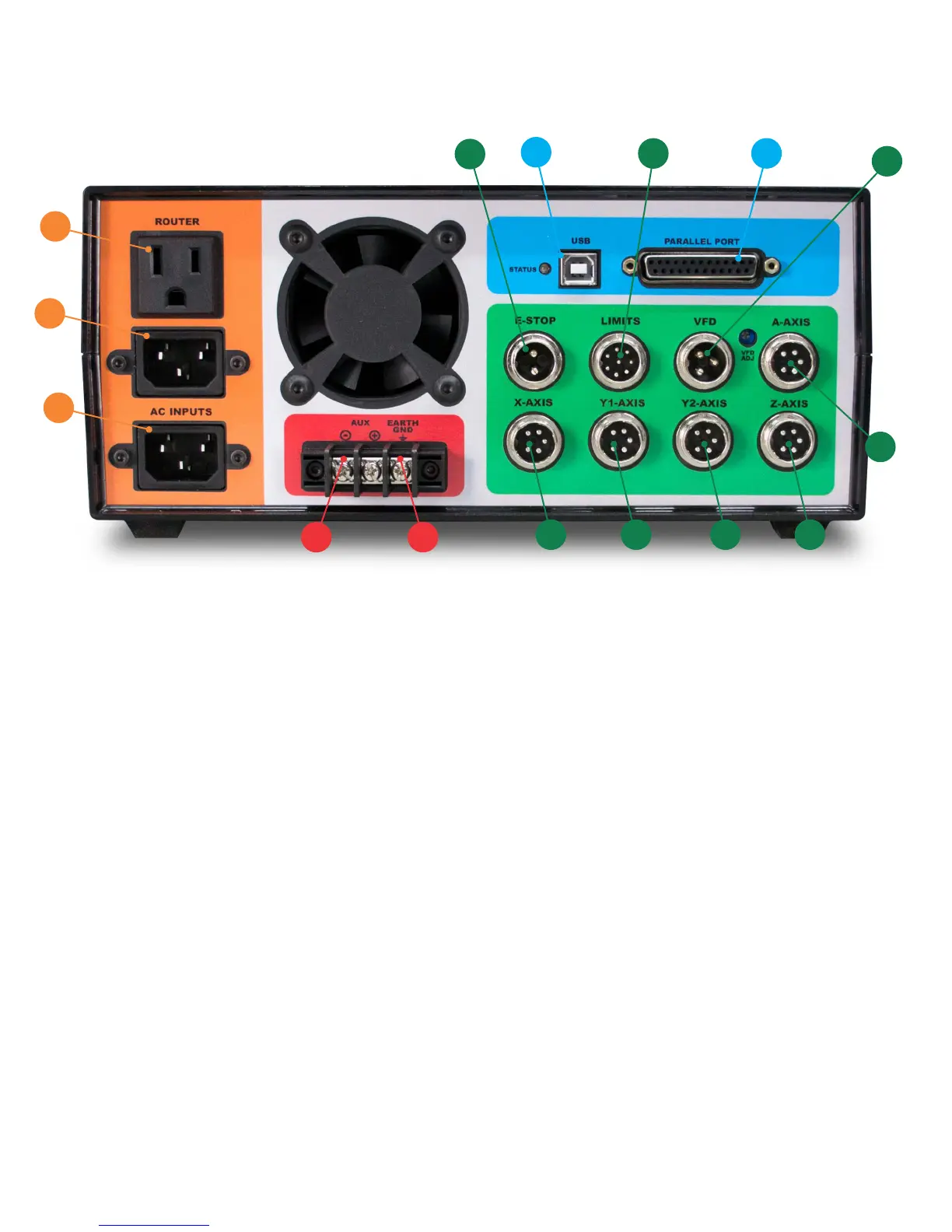 C: ROUTER - Connect to the green power cable from the machine harness. On-screen spindle controls, as well as
