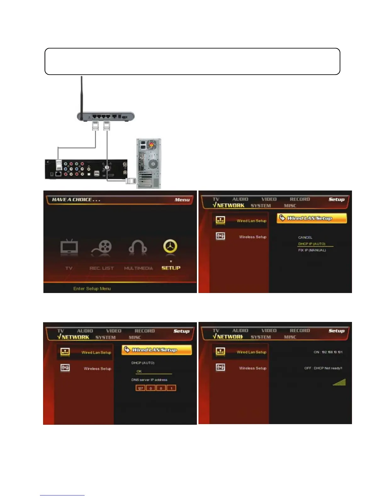② Select [Wired Lan Setup] => [DHCP IP (AUT)]