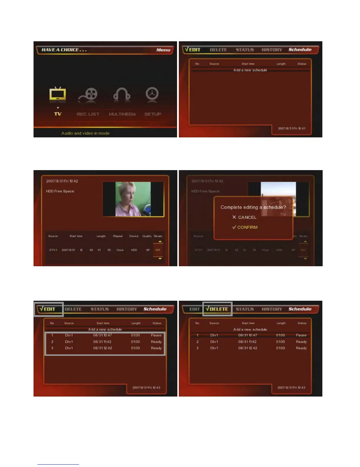 above and select & set up of TV Channel / Start Time /