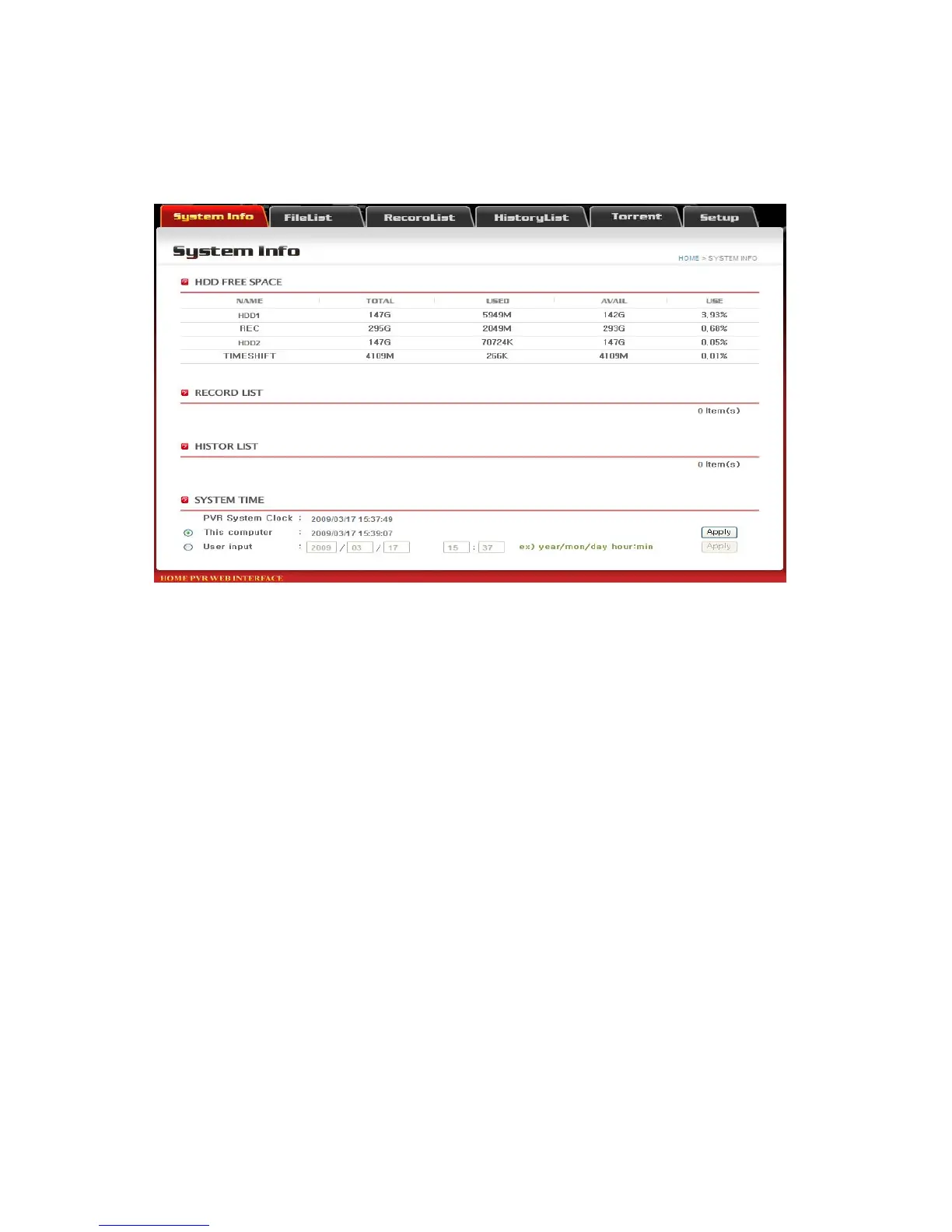 -. PVR System Clock : the current time information of the PBR-500 you are using now.