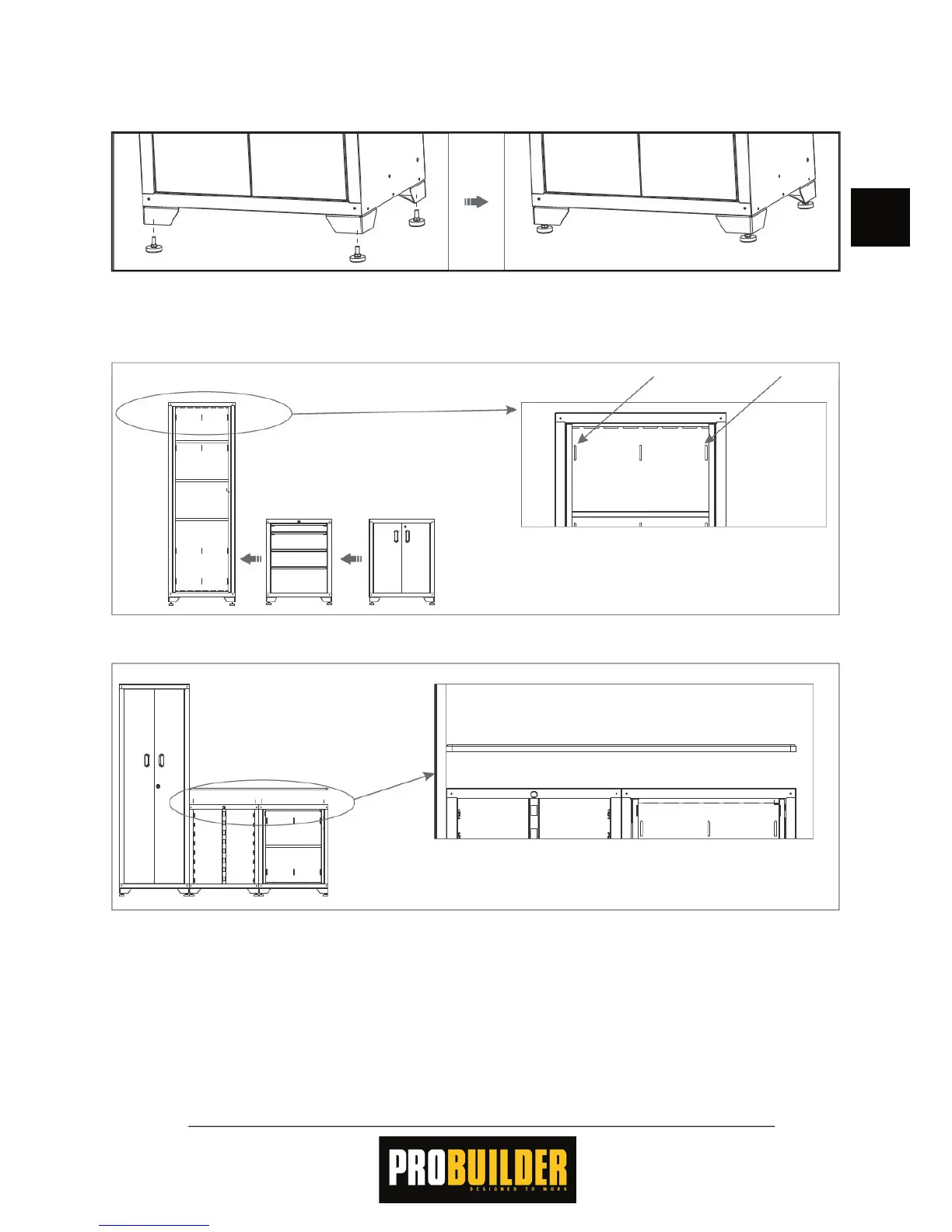 högskåpet. Justera fötterna vid behov, så att skåpen står vågrätt och utan att vippa.