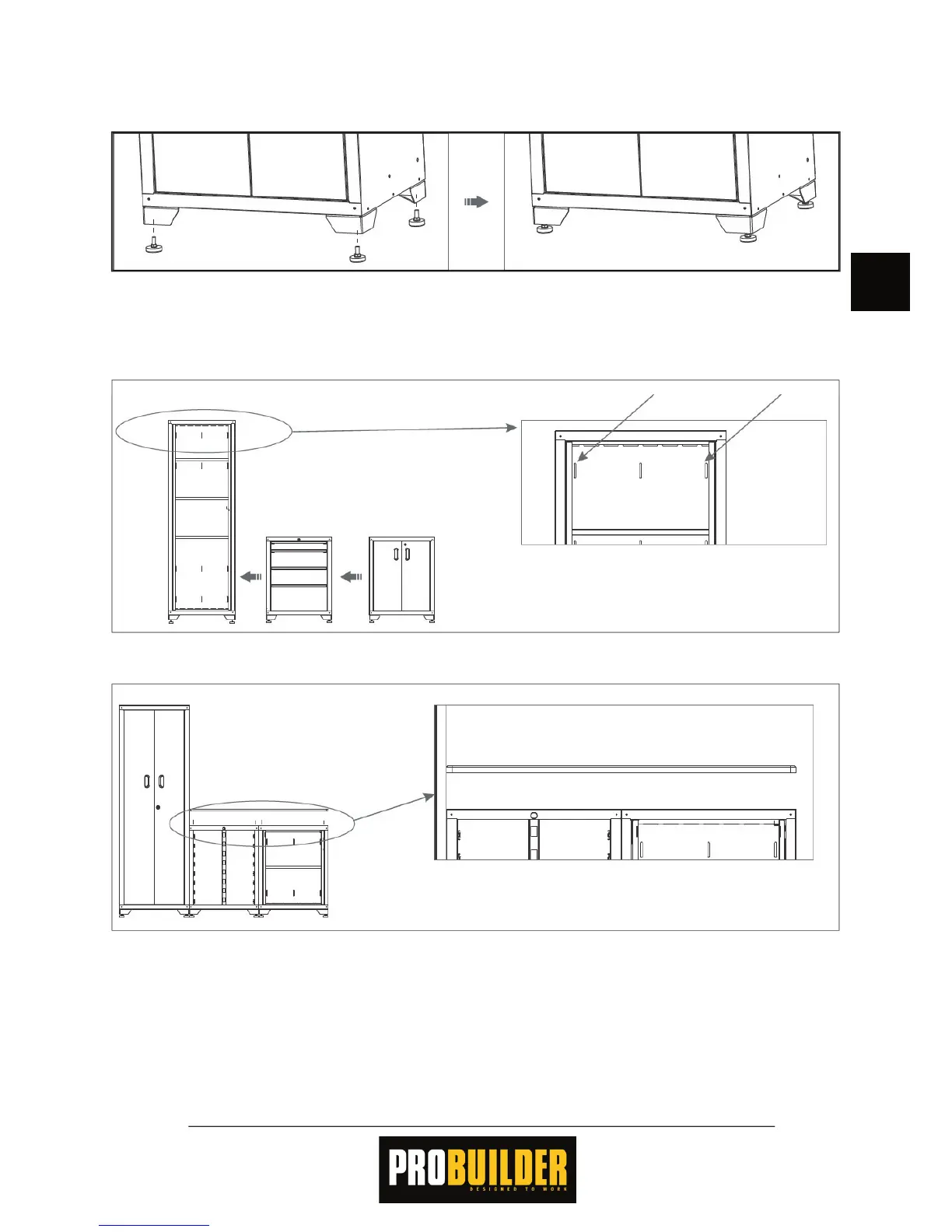 korkeakaapin viereen. Säädä tukijalat tarvittaessa siten, että kaapit ovat vakaina
