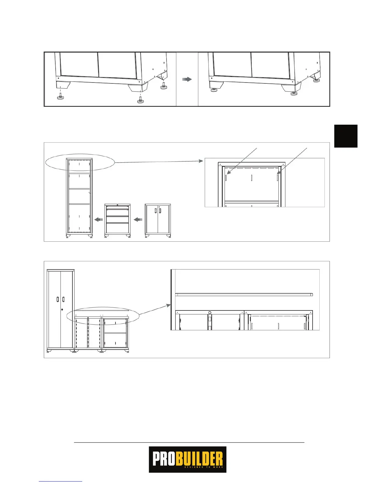 cabinet. If necessary, adjust the feet so the cabinets stand level and do not tilt.