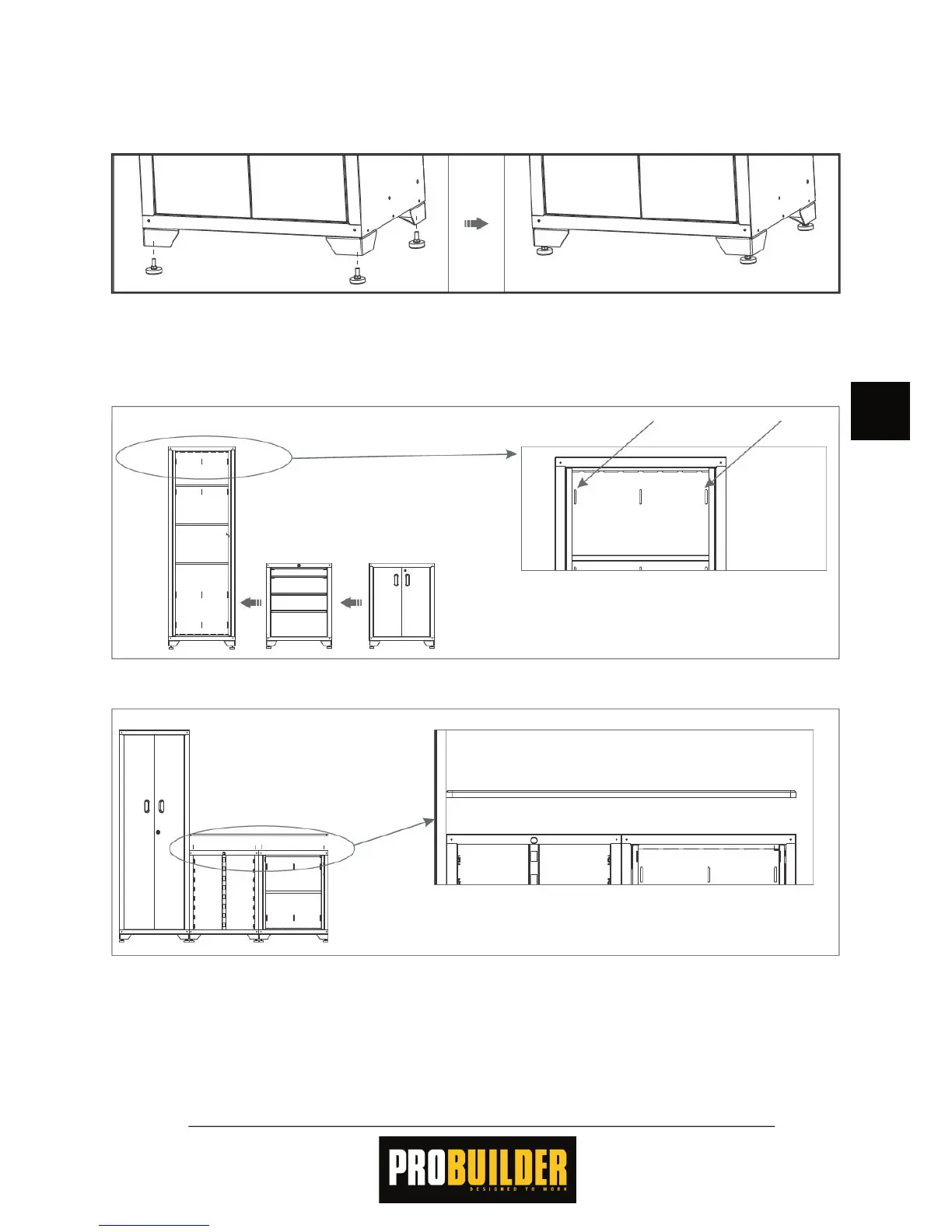 erforderlichenfalls die Füße ein, damit die Schränke im Wasser stehen ohne zu wackeln.