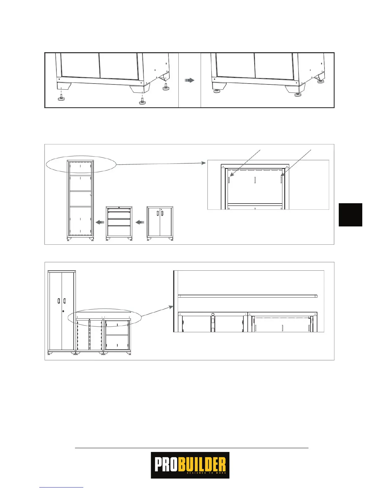 läbi kõrge kapi sisemiste ülemiste aukude. Asetage sahtlimoodul ja töökapp kõrge töökapi