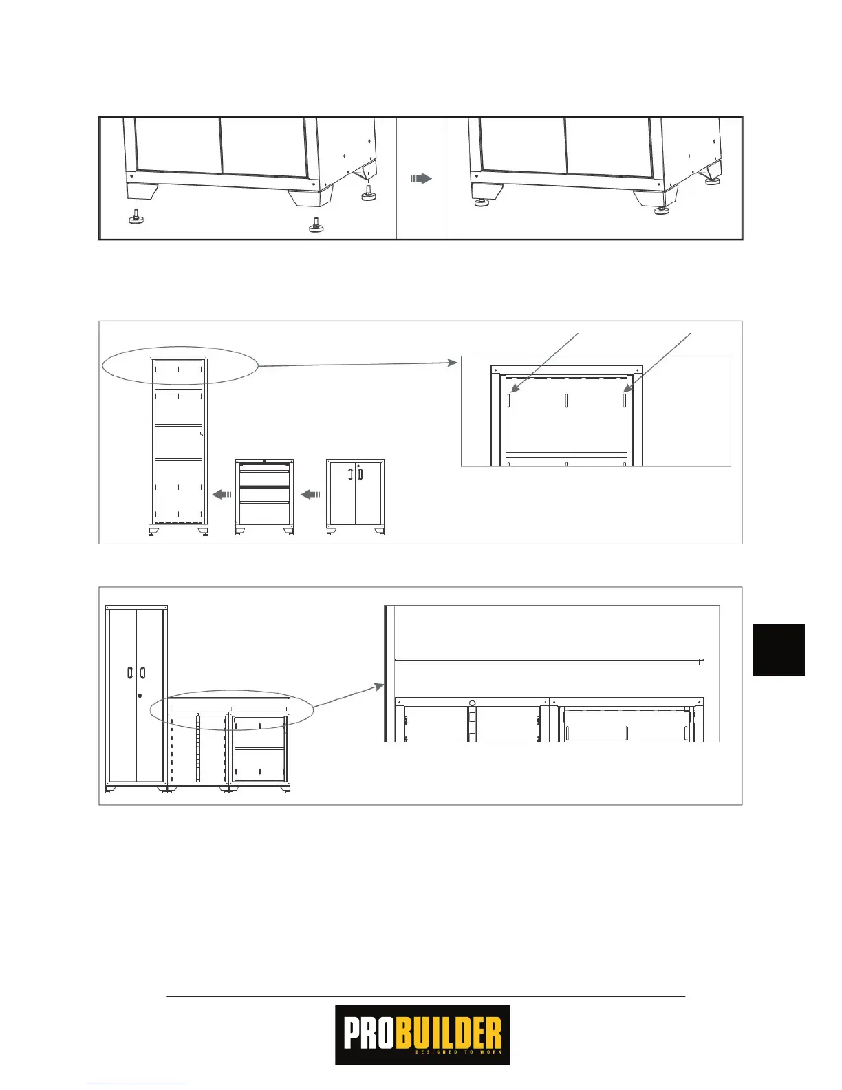 hoge kast. Stel indien nodig de pootjes af zodat de kasten waterpas staan en niet wiebelen.