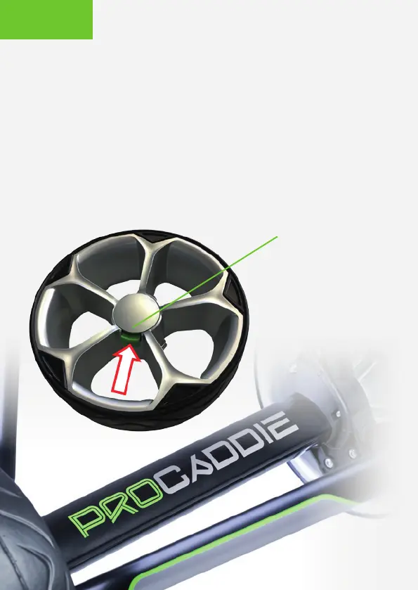 To t the wheels, pressed the button & slide wheel onto the shaft &