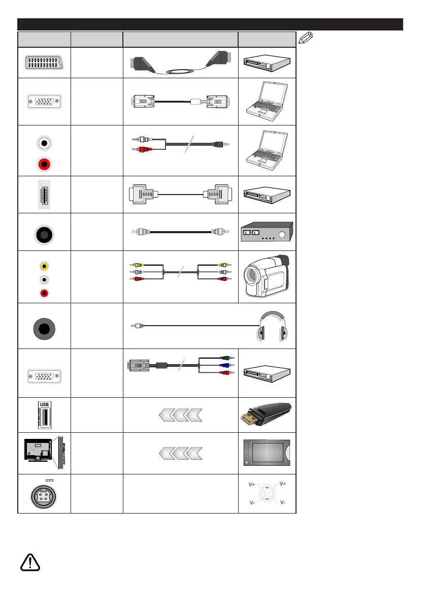 If you want to connect a device to the TV, make sure that both the TV and the device are turned off before making