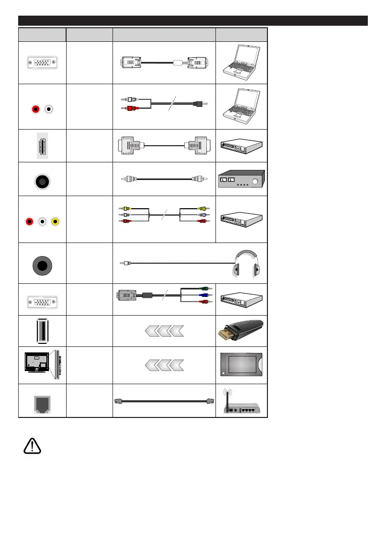 If you want to connect a device to the TV, make sure that both the TV and the device are turned off before making