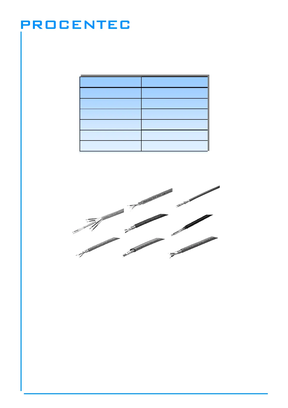 1.7 Cable types for PROFIBUS DP