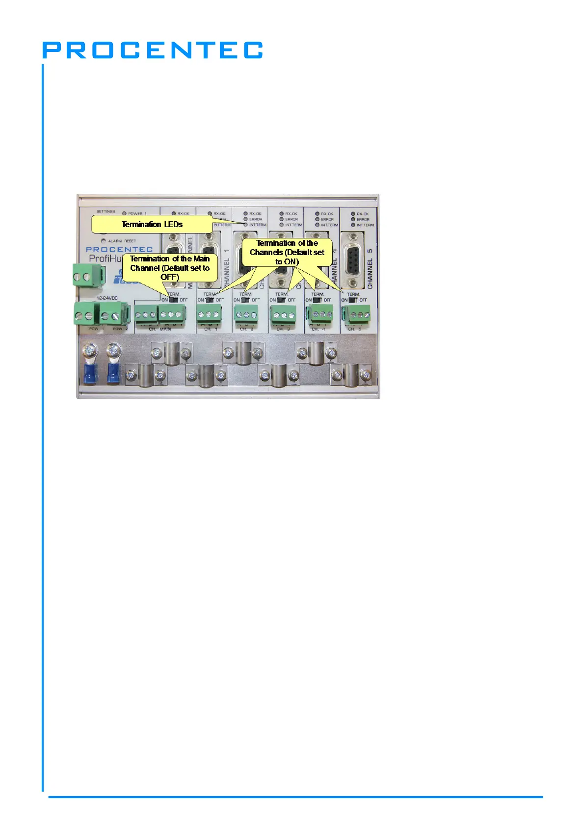 The termination of the Main-Channel has been set to OFF by default. If the ProfiHub is the last device