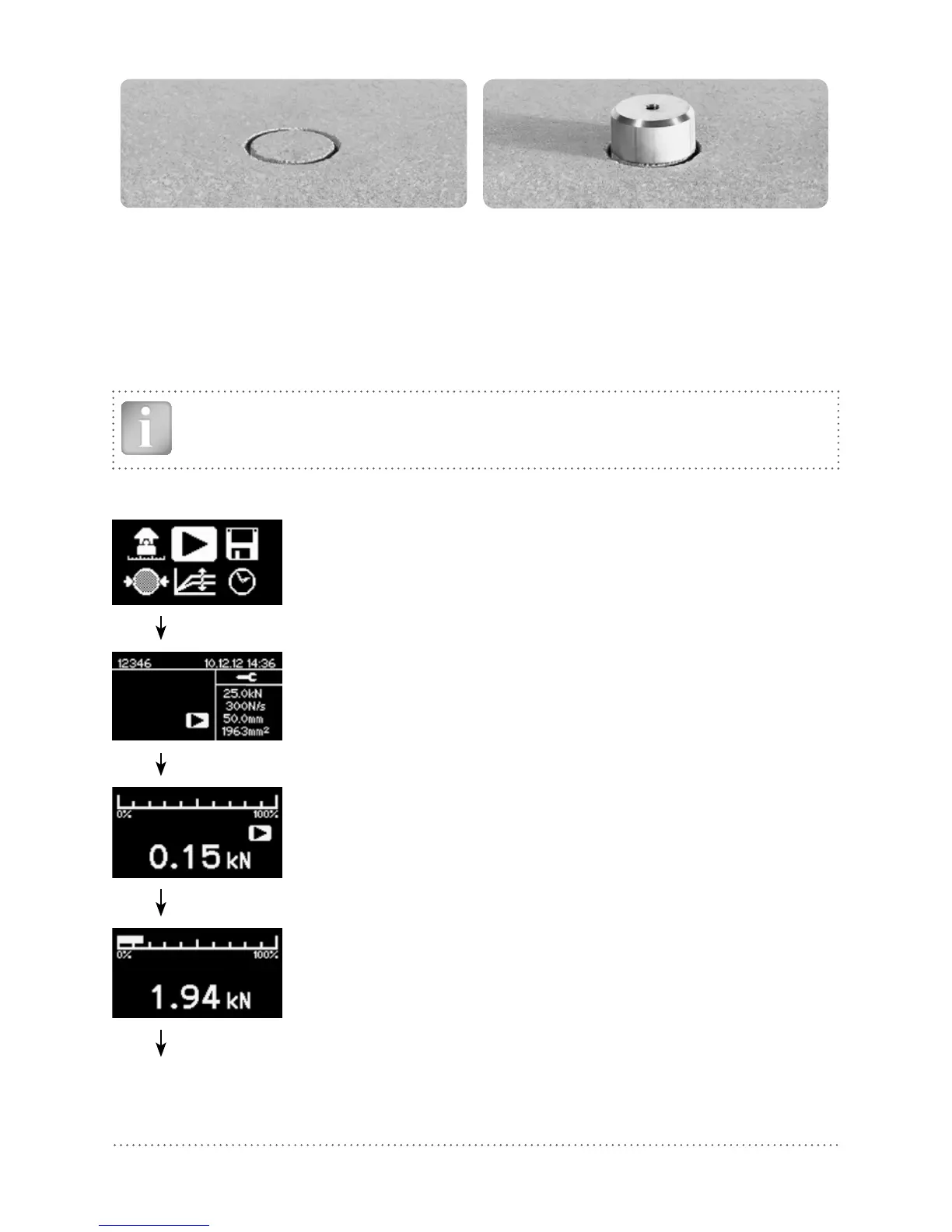 • Fixing the draw bolt to the test disc. (Proceq DY-2 test discs use a 10mm draw bolt. 8mm and