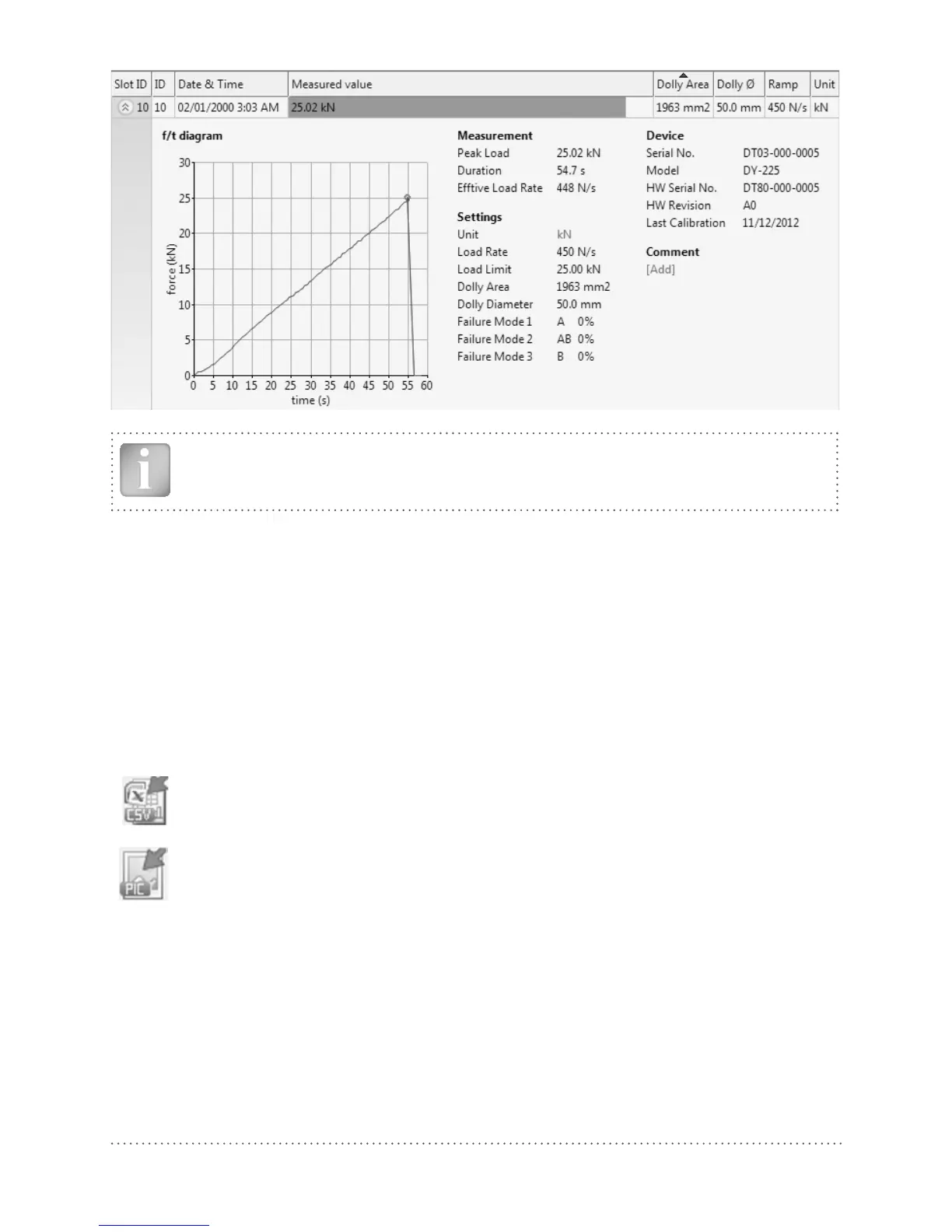 Click on the “Export measurements to CSV file(s)” icon. The data for this measurement