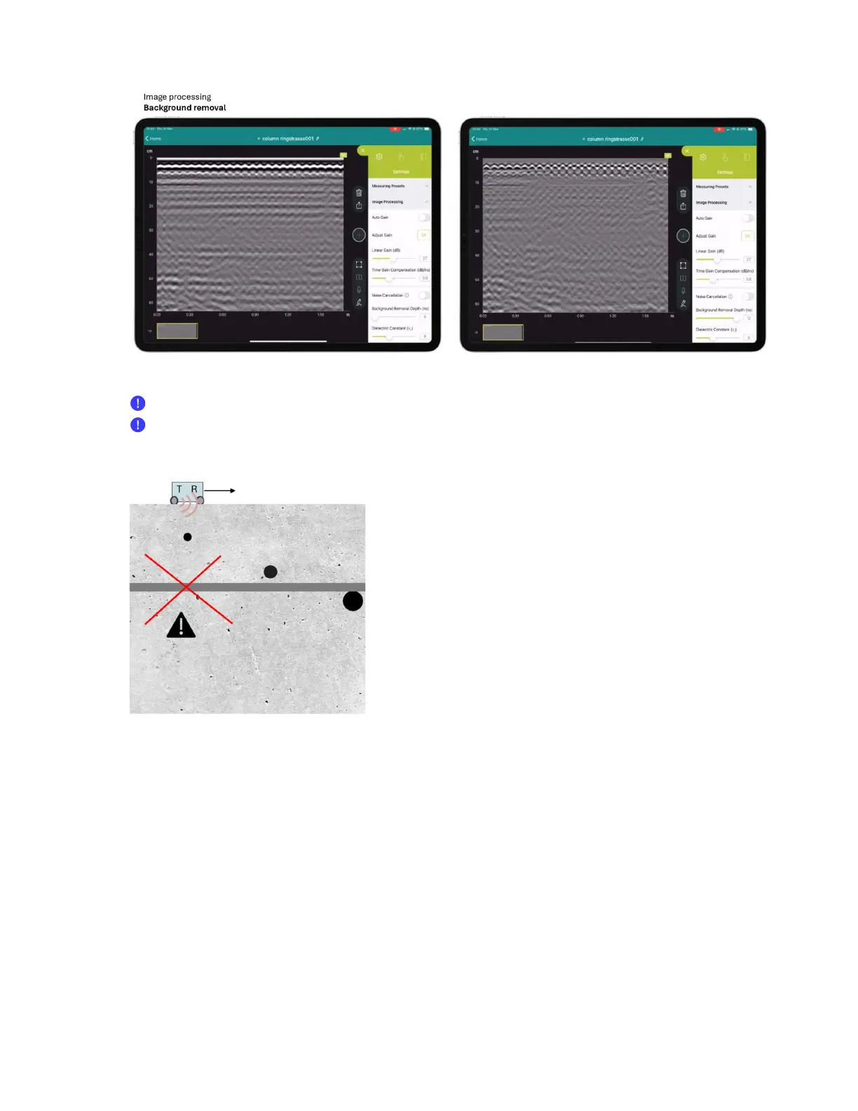 When first viewing a GPR radargram (B Scan), it is advisable to set background removal