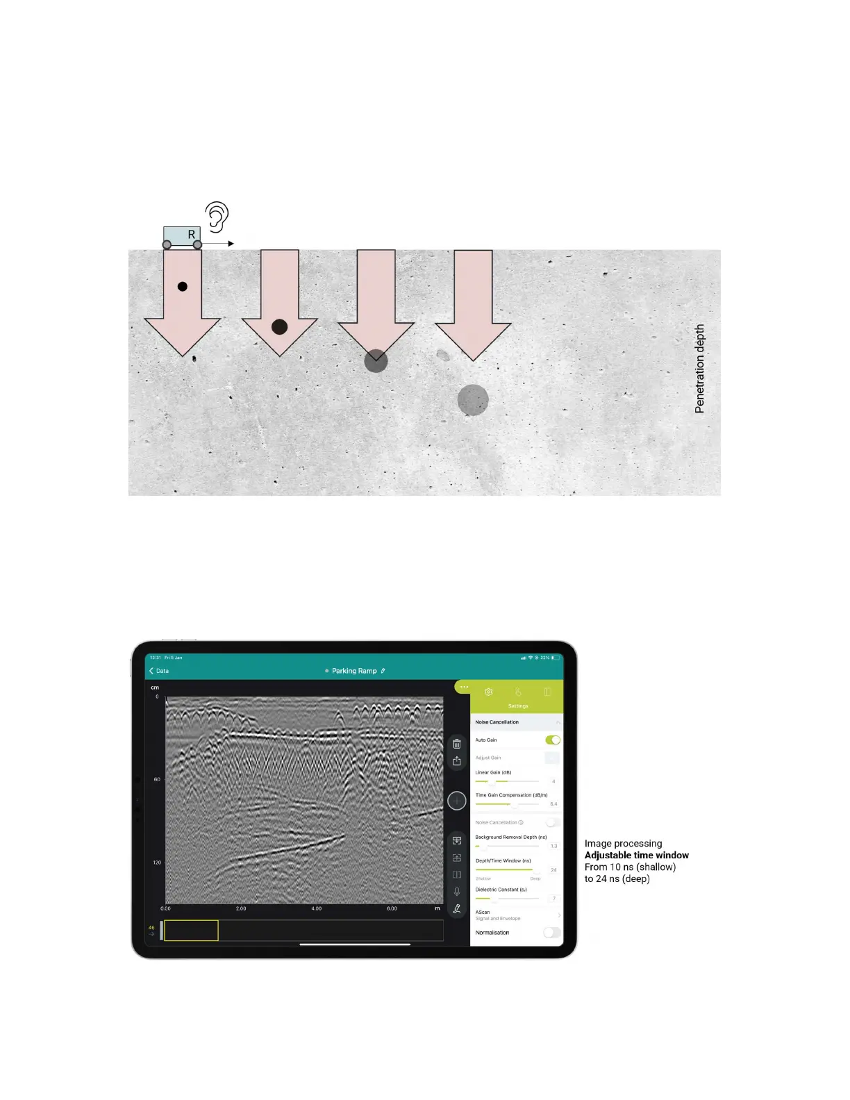 coming back from objects/reflectors in the concrete, as shown in Figure 34. Most handheld
