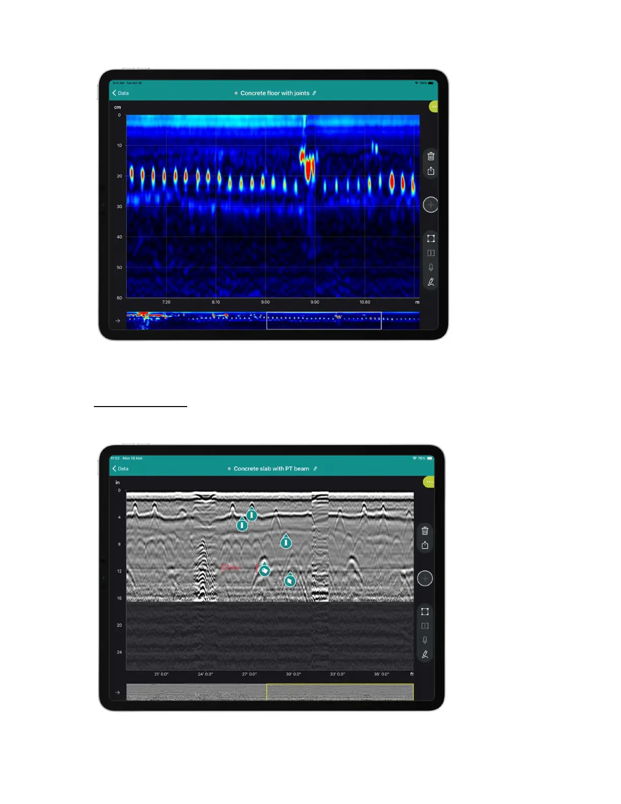 Figure 42: GP app software raw data view concrete slab with PT beam application