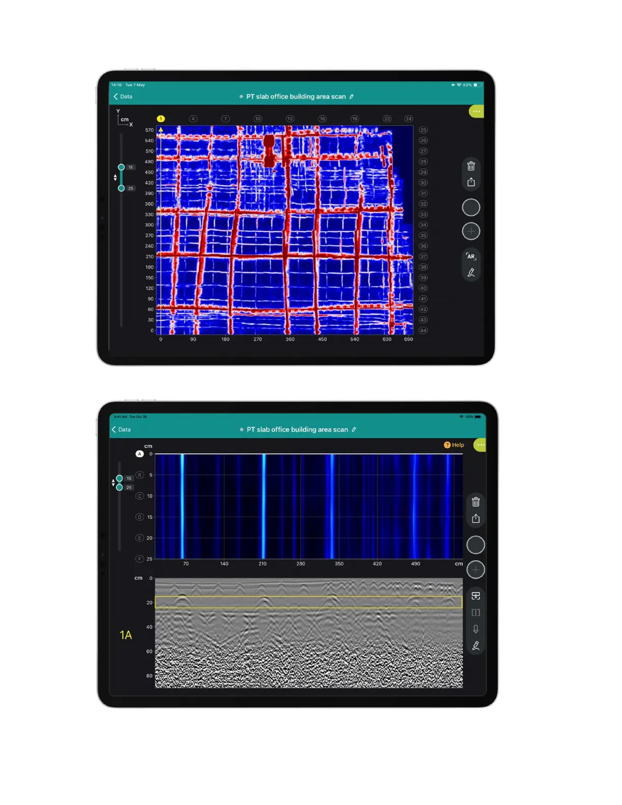 Figure 45: GP app software area scan PT concrete slab application