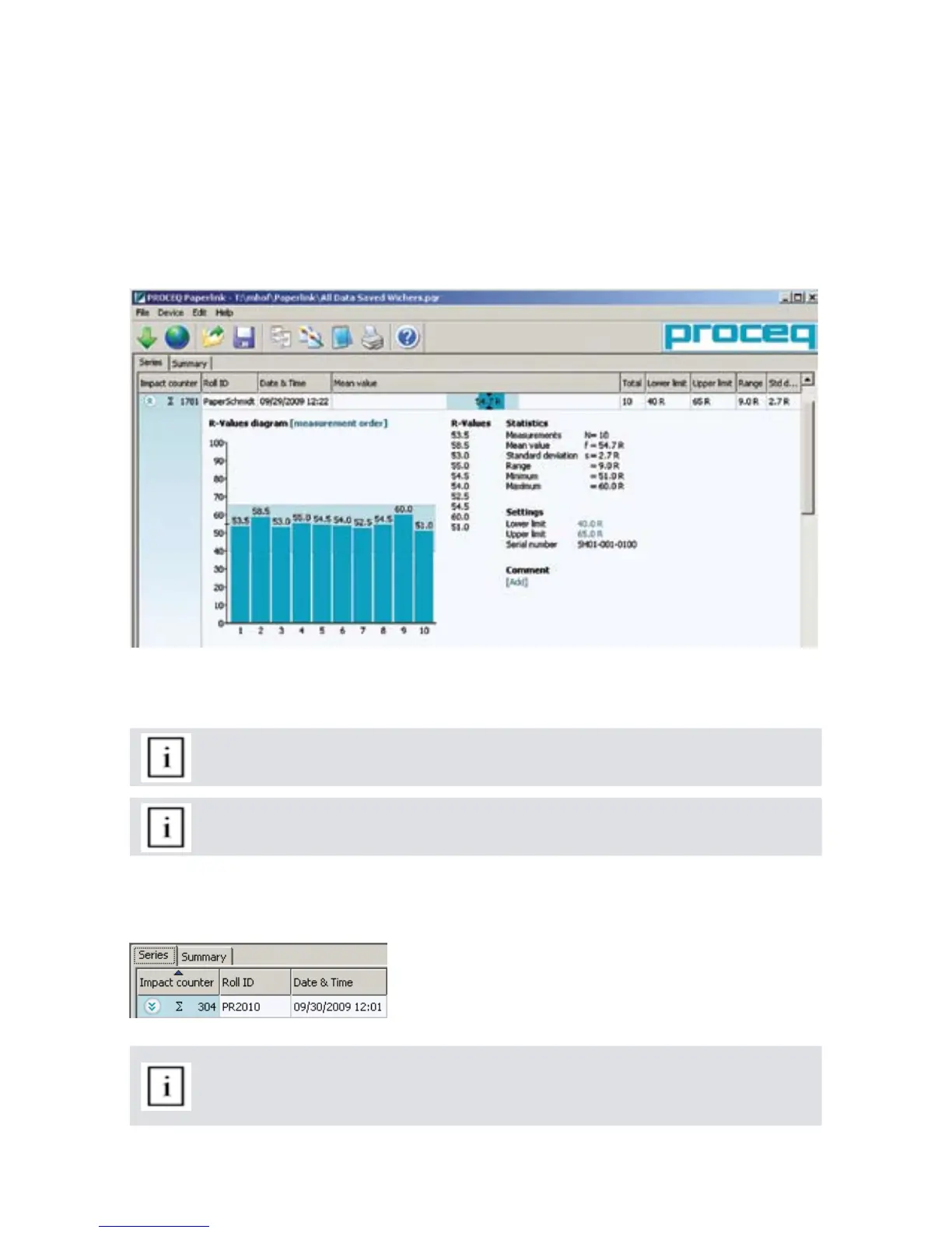 The test series is identified by the “Impact counter” value and by a “Roll ID” if assigned.