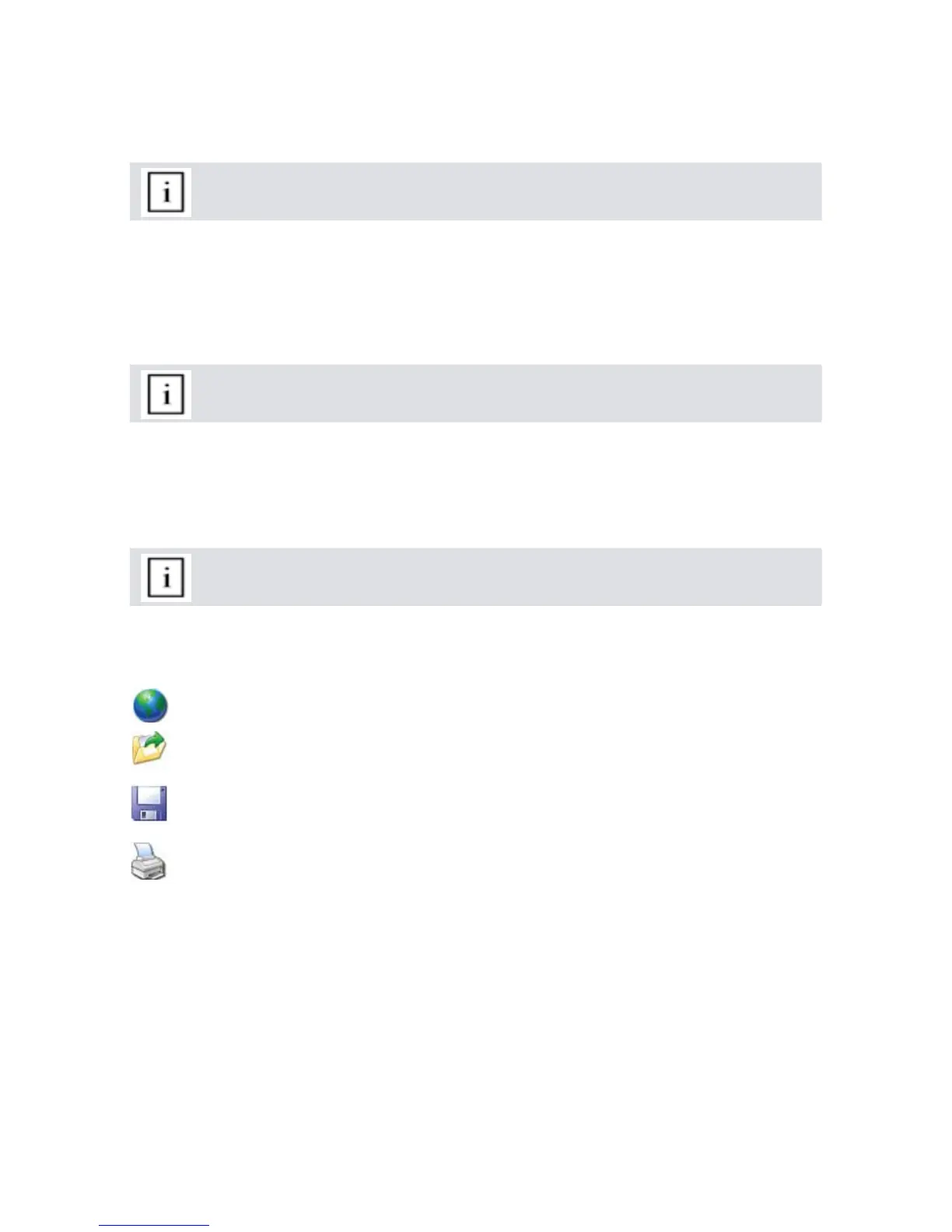 The following menu items are available via the icons at the top of the screen: