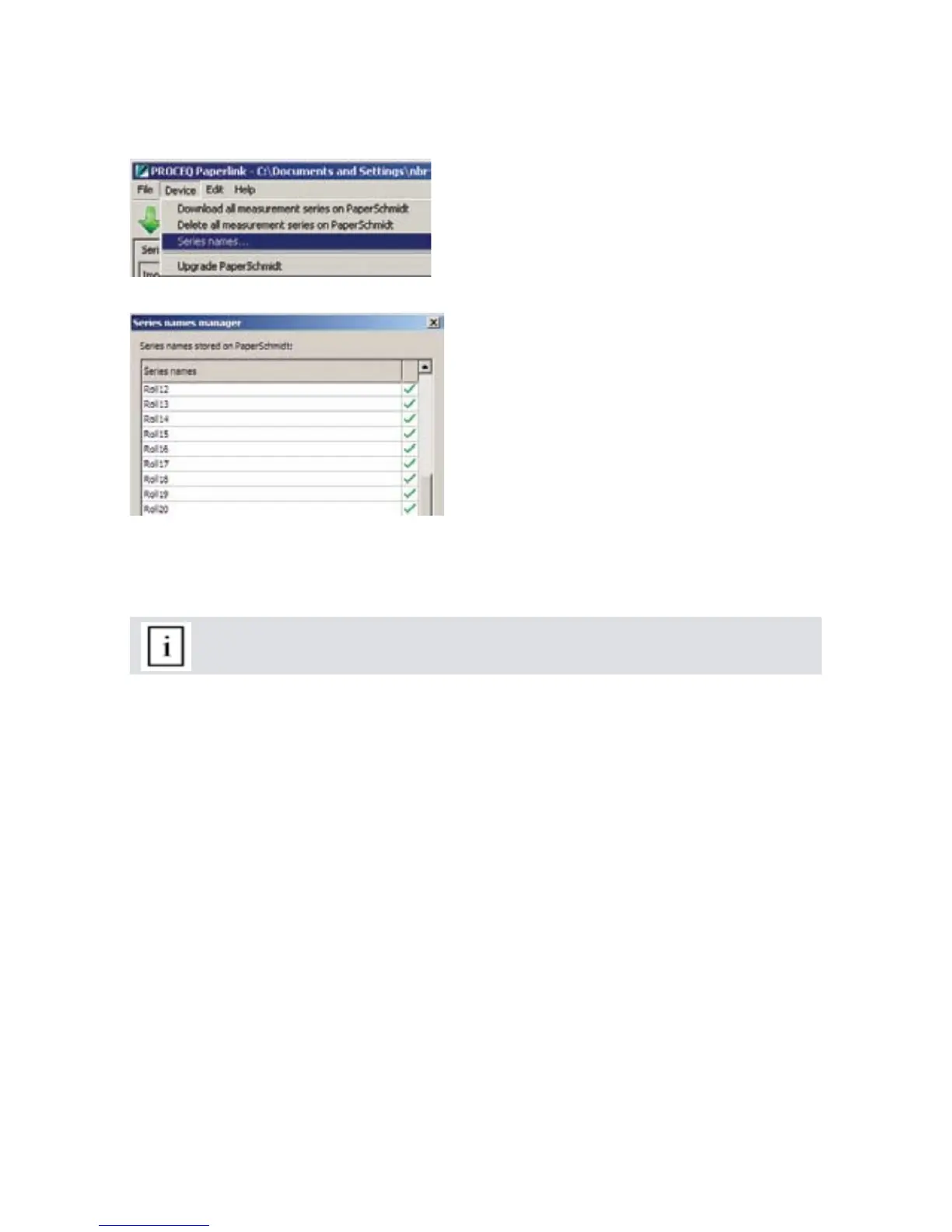 Select the menu item “Device - Series names…” to create pre-defined roll names which can be