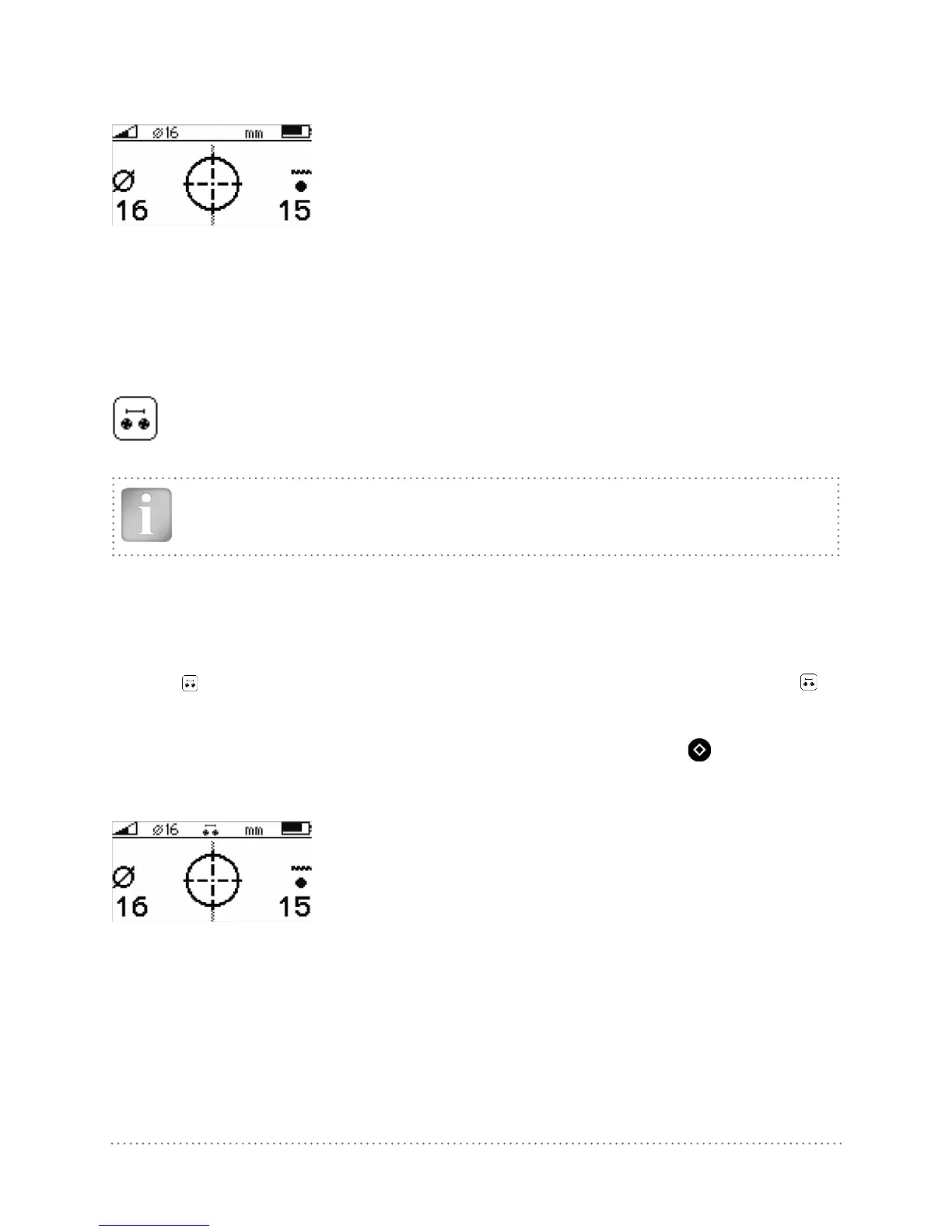 The measured rebar diameter appears for a few seconds instead of the signal strength arrow on the
