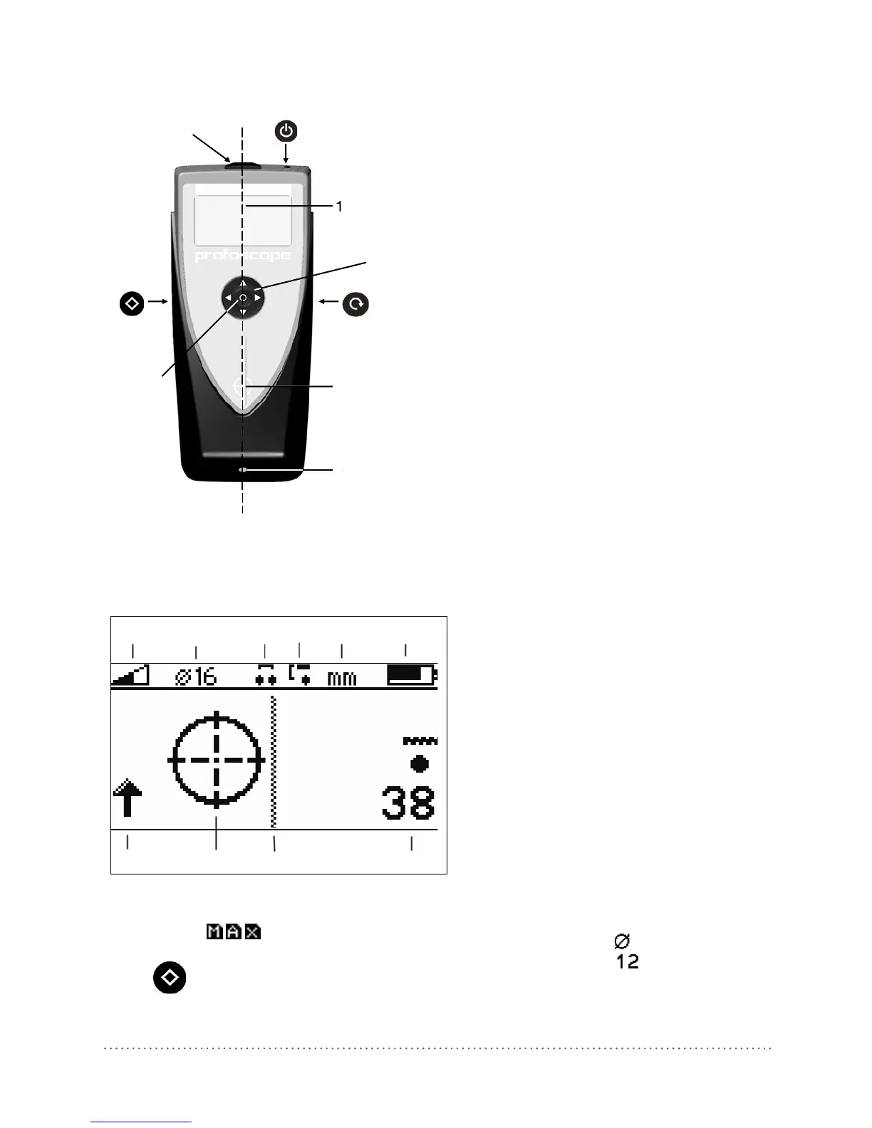 The signal strength arrow is replaced by the measured bar diameter: e. g. when the Function