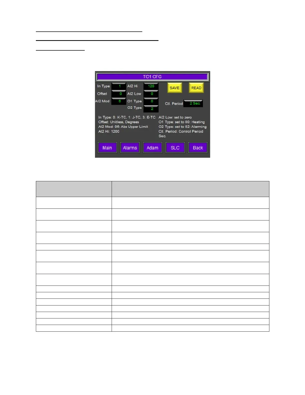 This button will display the SLC SETUP MENU screen.