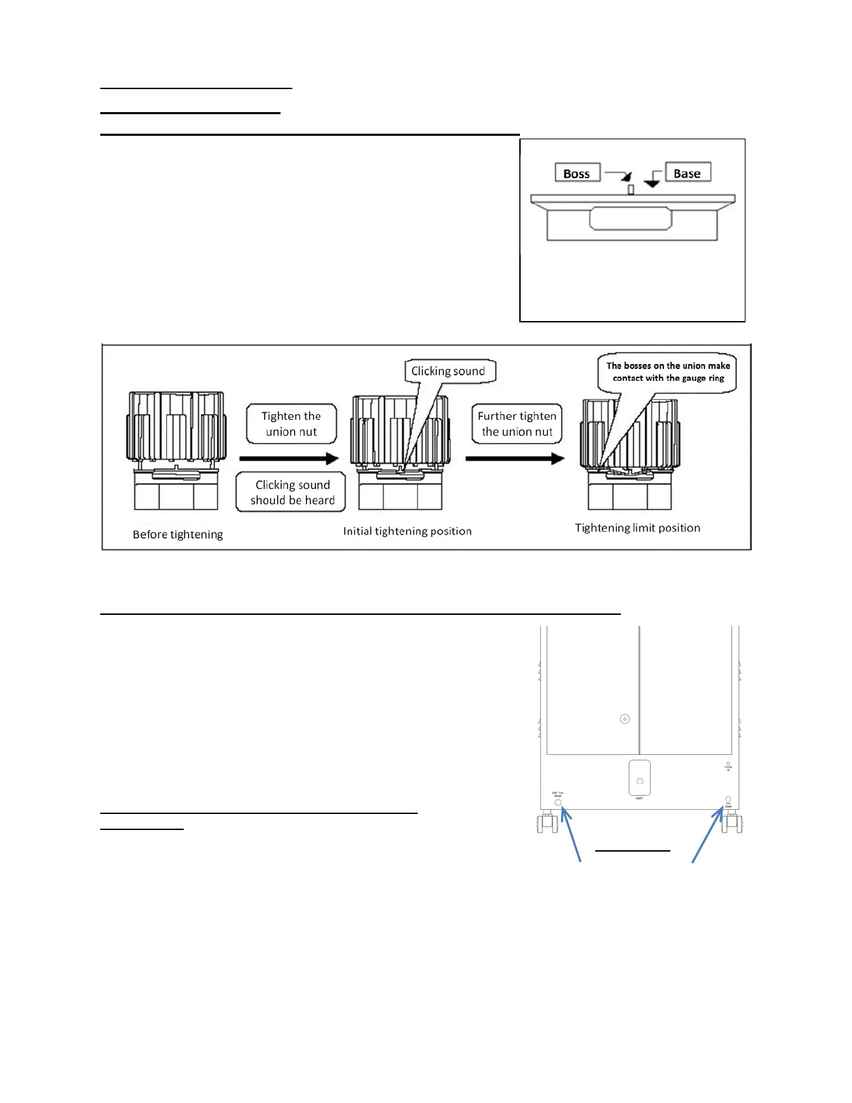 3) Tighten the Pillar fitting nut until the bosses on the union