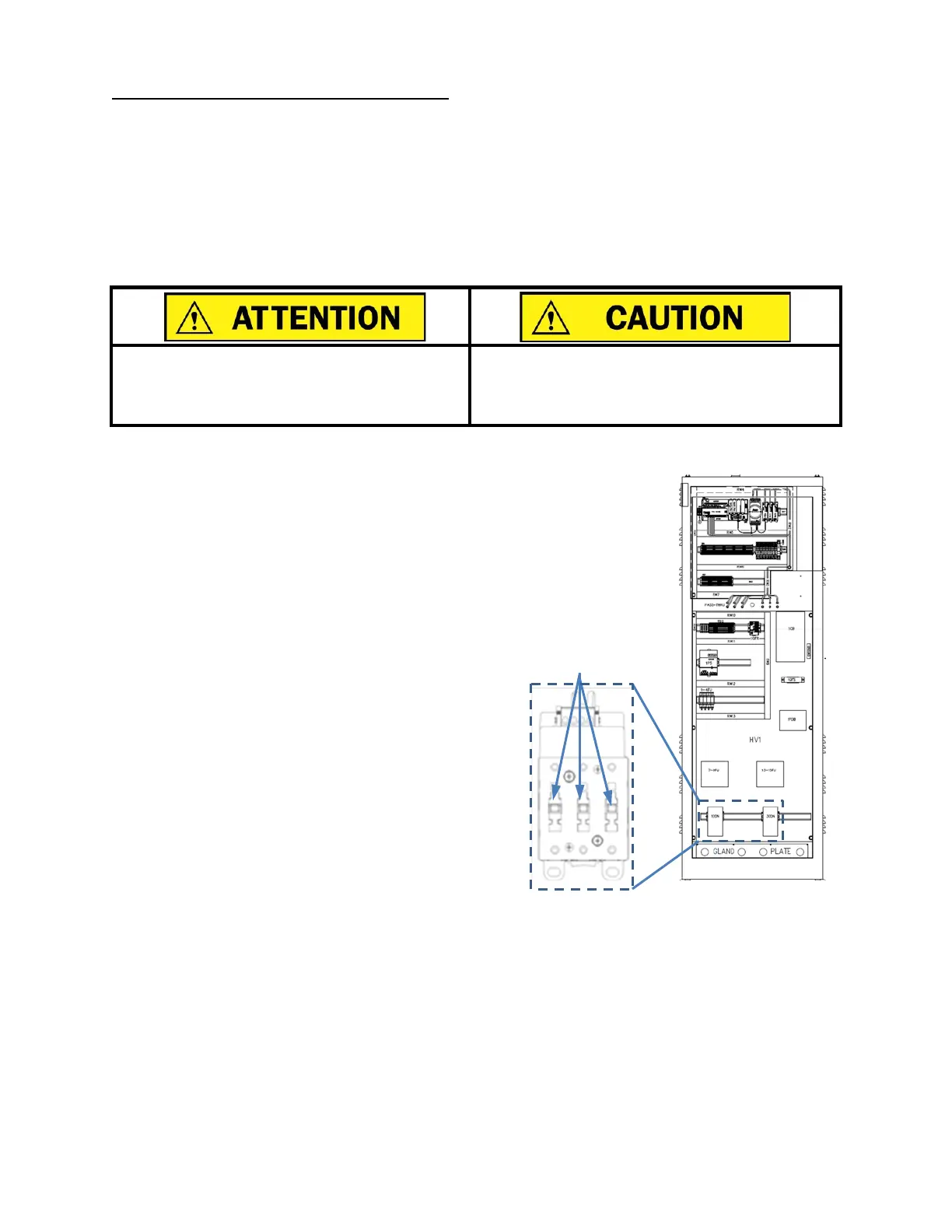 The safety contactors are mounted on the high-voltage section of the electrical panel. Each safety