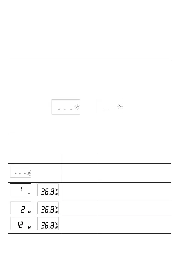 pasar de una escala a otra. Una vez escogida la escala, espere 5 segundos más hasta que el termómetro