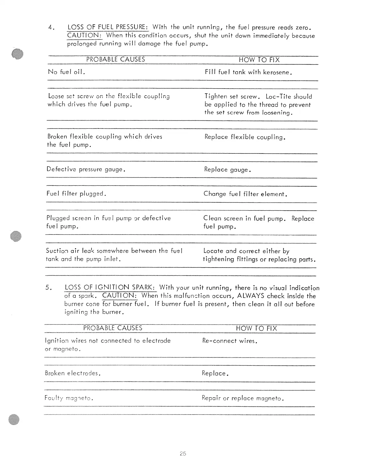 Prochem 100A - Loss of Fuel Pressure; Loss of Ignition Spark