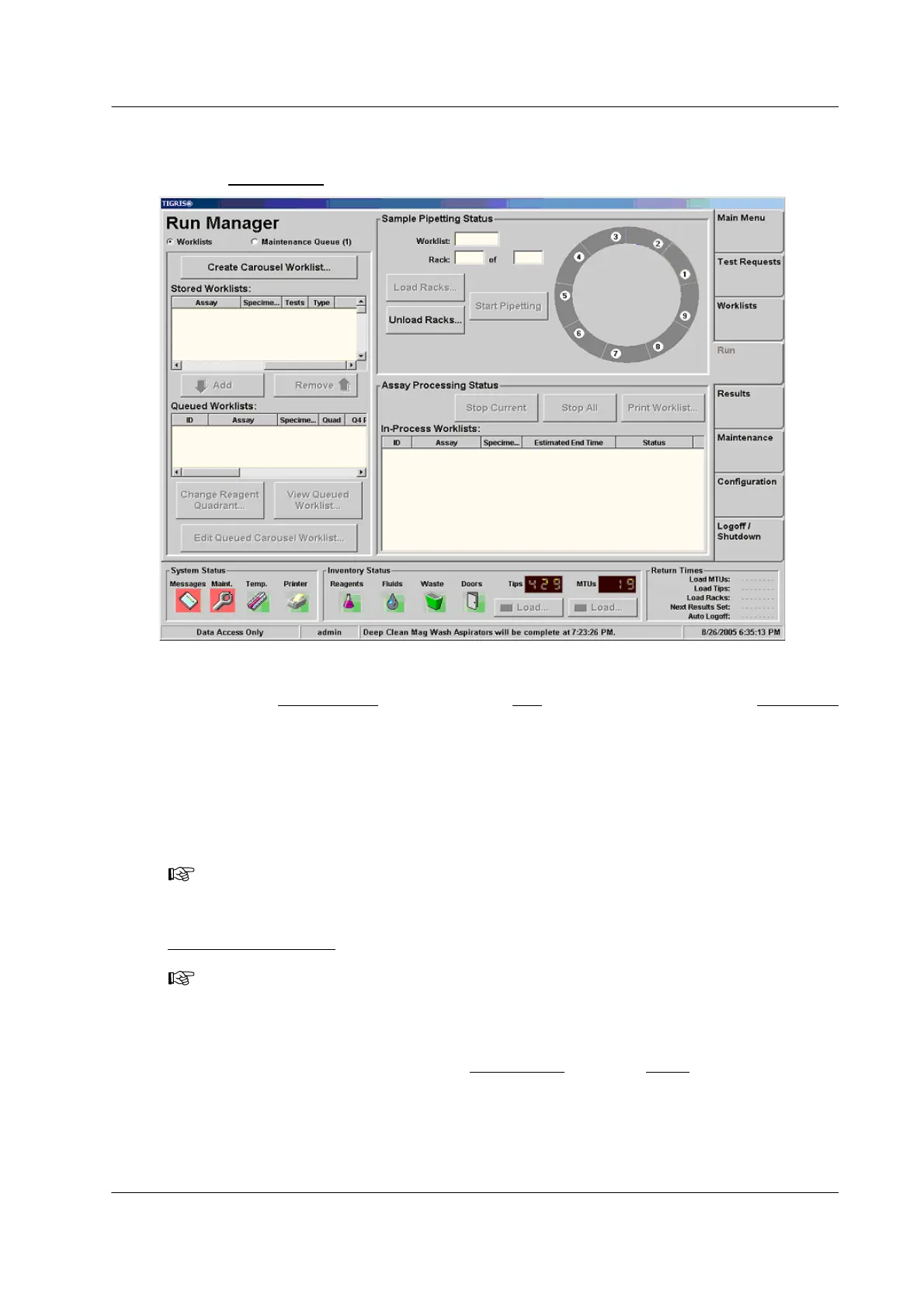 Figure 3.4 Run Manager Screen (Example)