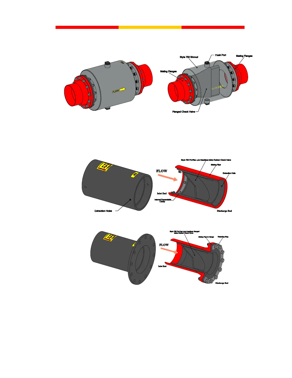 Note: For flanged versions of the ProFlex Style 790 Low Head Loss In-Line Rubber Check Valves the integrated rubber flange