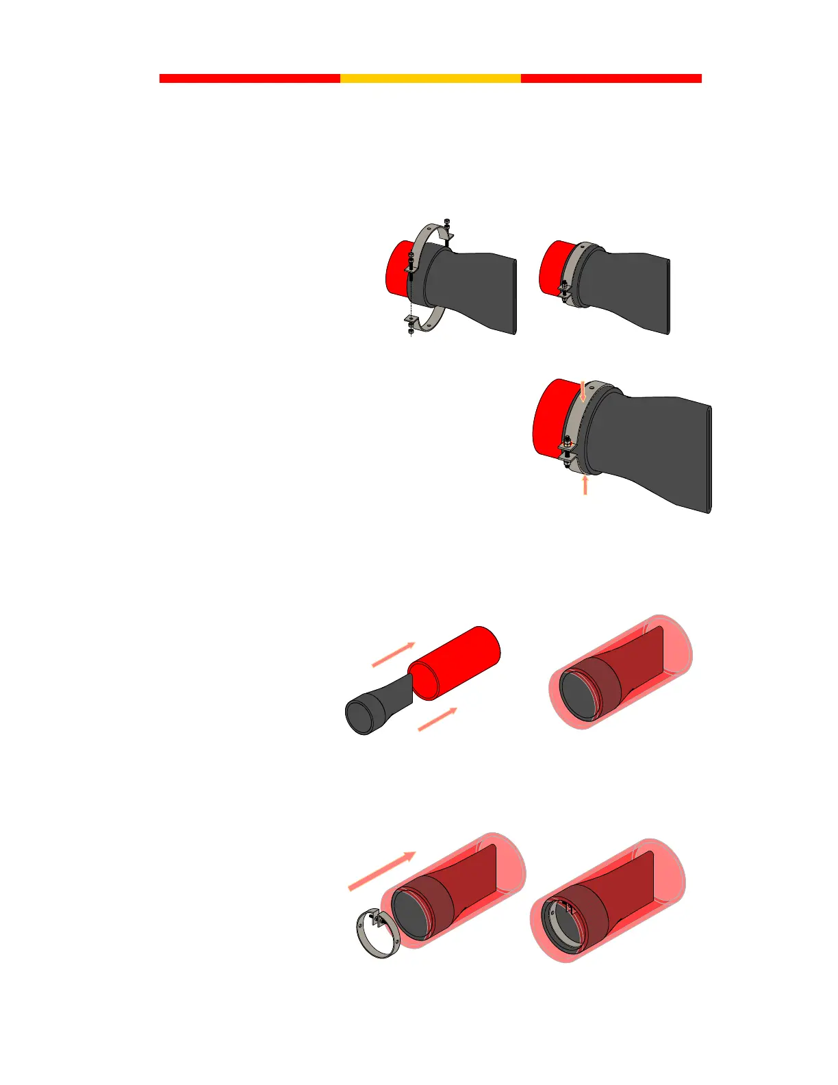 Add the external clamps to the slip-on rubber check valve. For nominal diameters less than or equal