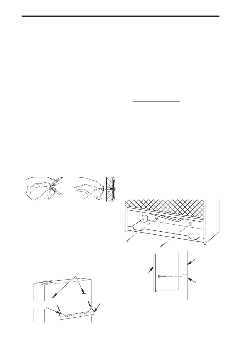 3. Insert wall anchor (wings rst) into hole.