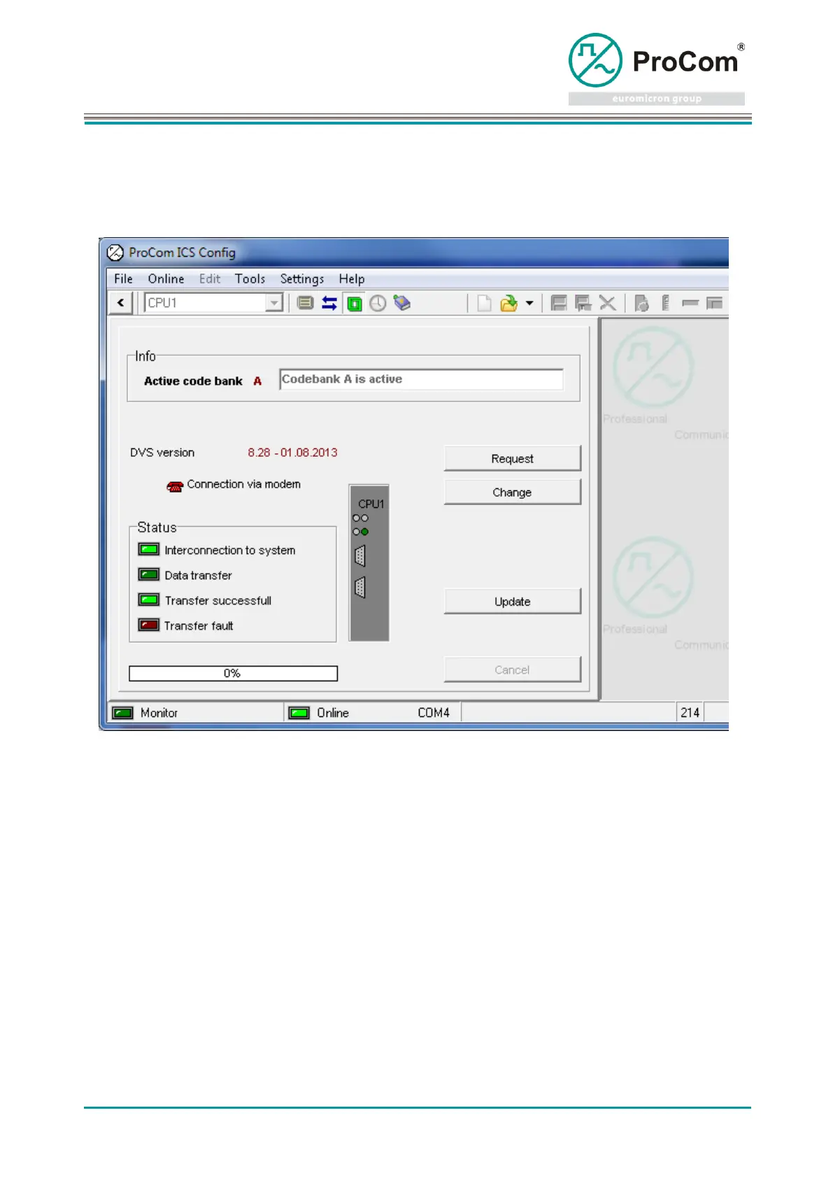 The system has two code banks. This offers the option of transferring new firmware to the inactive code