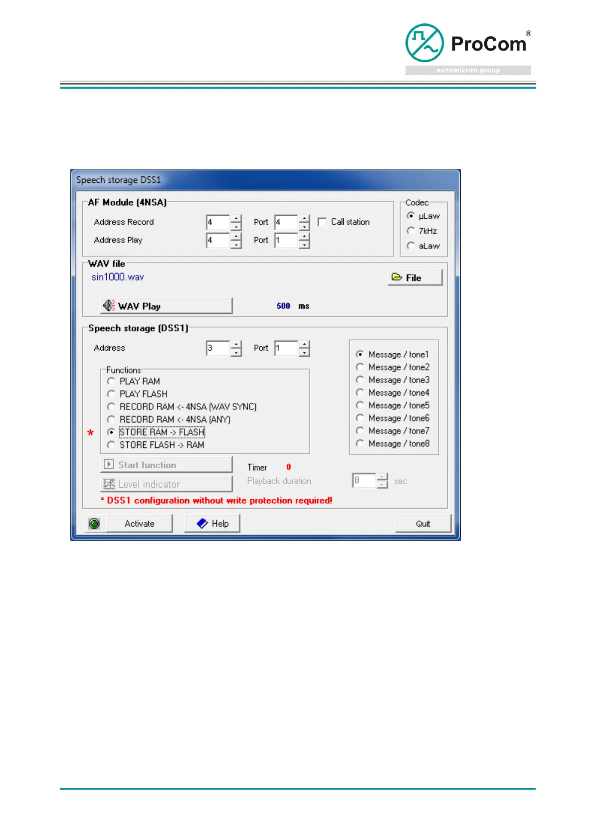 Recording, playback and testing of the DSS1 (Speech storage) module