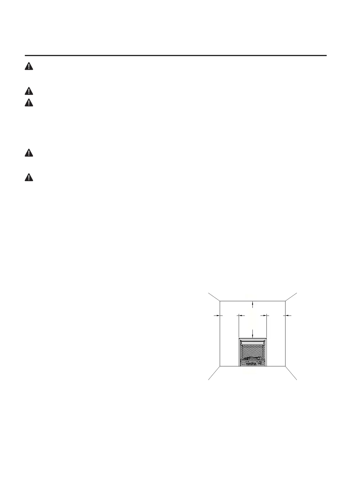 WARNING: Maintain the minimum clearances. If you can, provide greater clearances from oor, ceiling and adjoining side