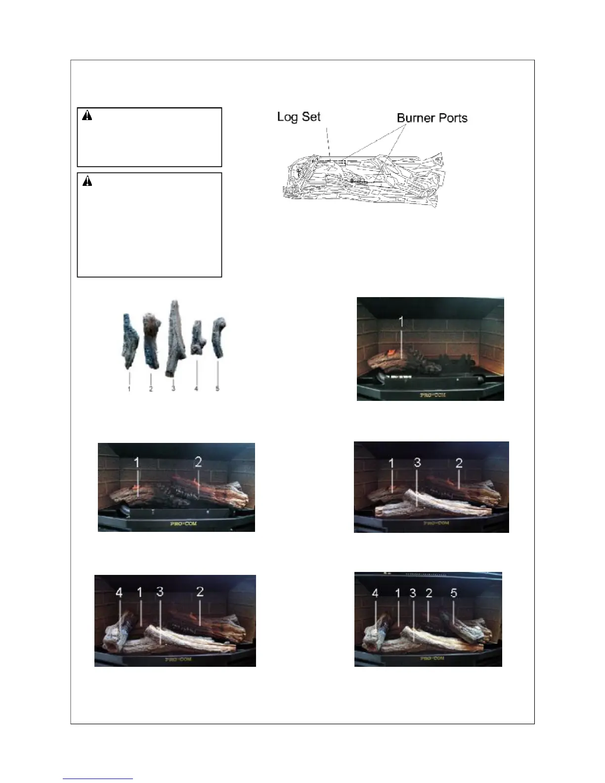 IMPORTANT: Make sure log does not cover any burner ports (see