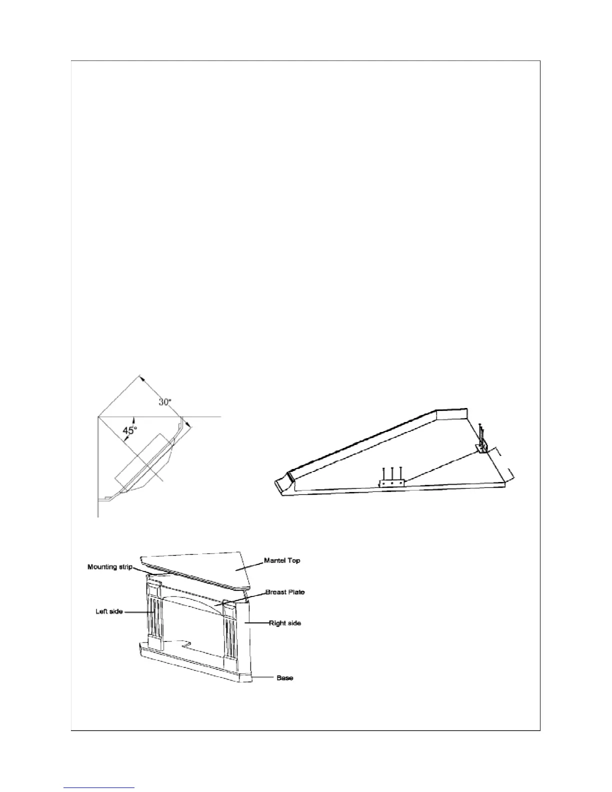 6. Place the assembled fireplace on the middle where it is 30” from the corner and
