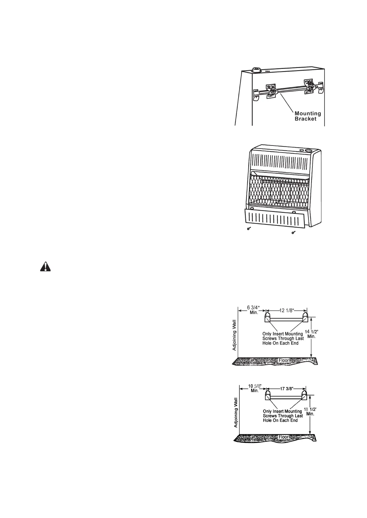 1. Tape mounting bracket to wall where heater will be located.