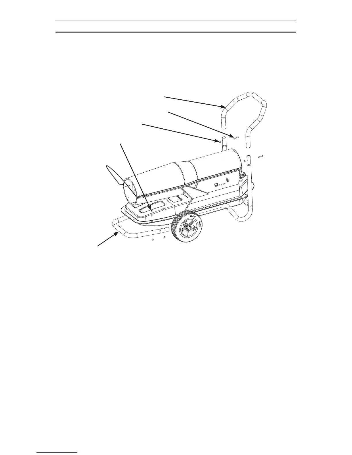 bride à travers les trous dans la bride dans les trous de poignée. Fixez écrous (H) et serrer.