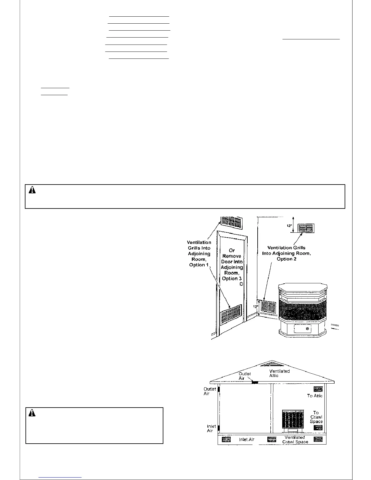 space, remove door to adjoining room or add ventilation grills between rooms. See Ventilation Air From