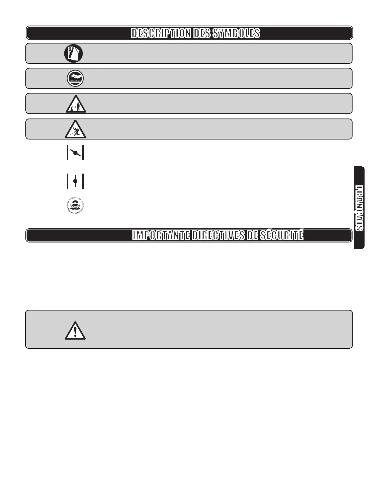 IMPORTANTE DIRECTIVES DE SÉCURITÉ