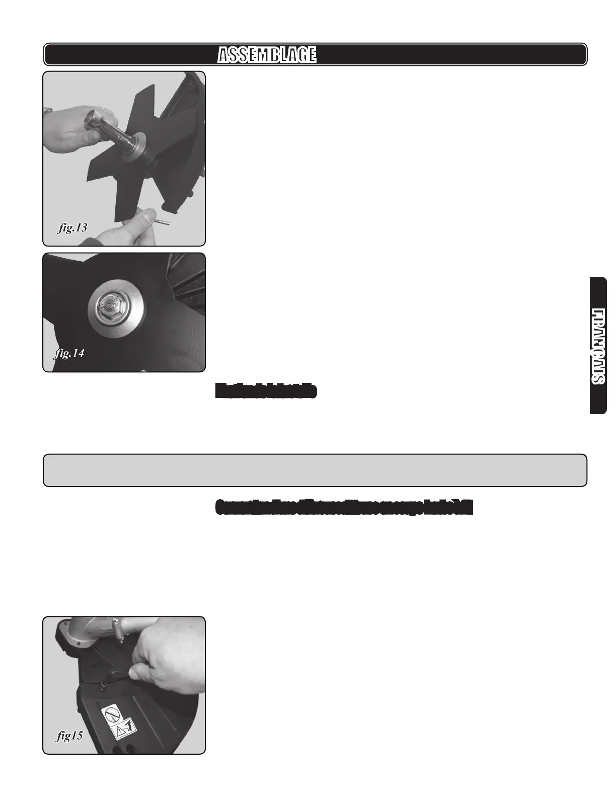 11. Serrez l’écrou de la lame à un couple de serrage minimum de 13,55 Nm (120 lb-