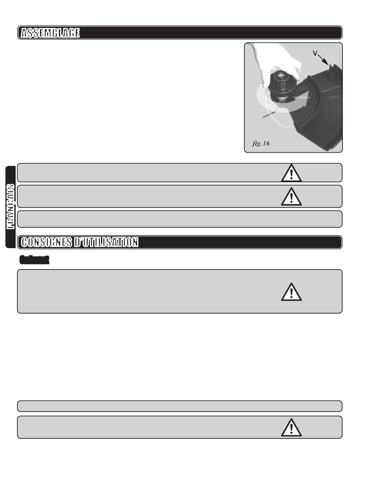 11. Vériez que la lame de sectionnement de l (V, g.16) n’a pas sa couverture de